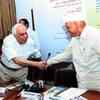 Kapil Sibal shakes hands with Mohan Dharia during India's glorious freedom struggle and post-independence era book launch at India International Centre on July 7, 2010 in Delhi - Photogallery