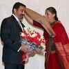 Union Minister Ambika Soni greets actors Kamal Haasan and Gauthami Haasan (L) during the 'Retrospective of Kamal Haasan Films' held at Siri Fort Auditorium in New Delhi - Photogallery