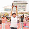 Om Prakash Maharaj teaching asanas during a meditation and yoga session, Yoga For The Soul, on the occasion of International Yoga Day, held at Select Citywalk, Saket - Photogallery