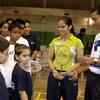 Saina Nehwal and P interacts with trainees of the Badminton Players' Association (WB)-organised clinic at Kshudiram Anushilan Kendra. (Photo/ Krishna Roy)