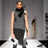 Tinu Verghese walks the ramp to showcase a creation by designer Ritesh Kumar on Day 4 of the Wills Lifestyle India Fashion Week (WIFW) 2012 in Delhi.