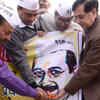 Supporters of the Indian Aam Aadmi Party (Common Man's Party) pose as they offer sweets to a poster bearing the portrait of AAP leader Arvind Kejriwal, after Kejriwal won the state assembly election against Delhi Chief Minister Sheila Dikshit, in Amritsar on December 8, 2013. (BCCL) /news/india/bjp-aap-celebrate-assembly-polls-win/eventshow/27135745.cms03