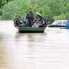 Indian army soldiers rescue stranded villagers in a boat after floods triggered by heavy rains at Odhri village in Yamunanagar district of the northern Indian state of Haryana.