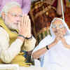 A victorious Narendra Modi seeks blessings of his mother Hiraba at her home in Gandhinagar as election results showed a landslide win for BJP led by him.